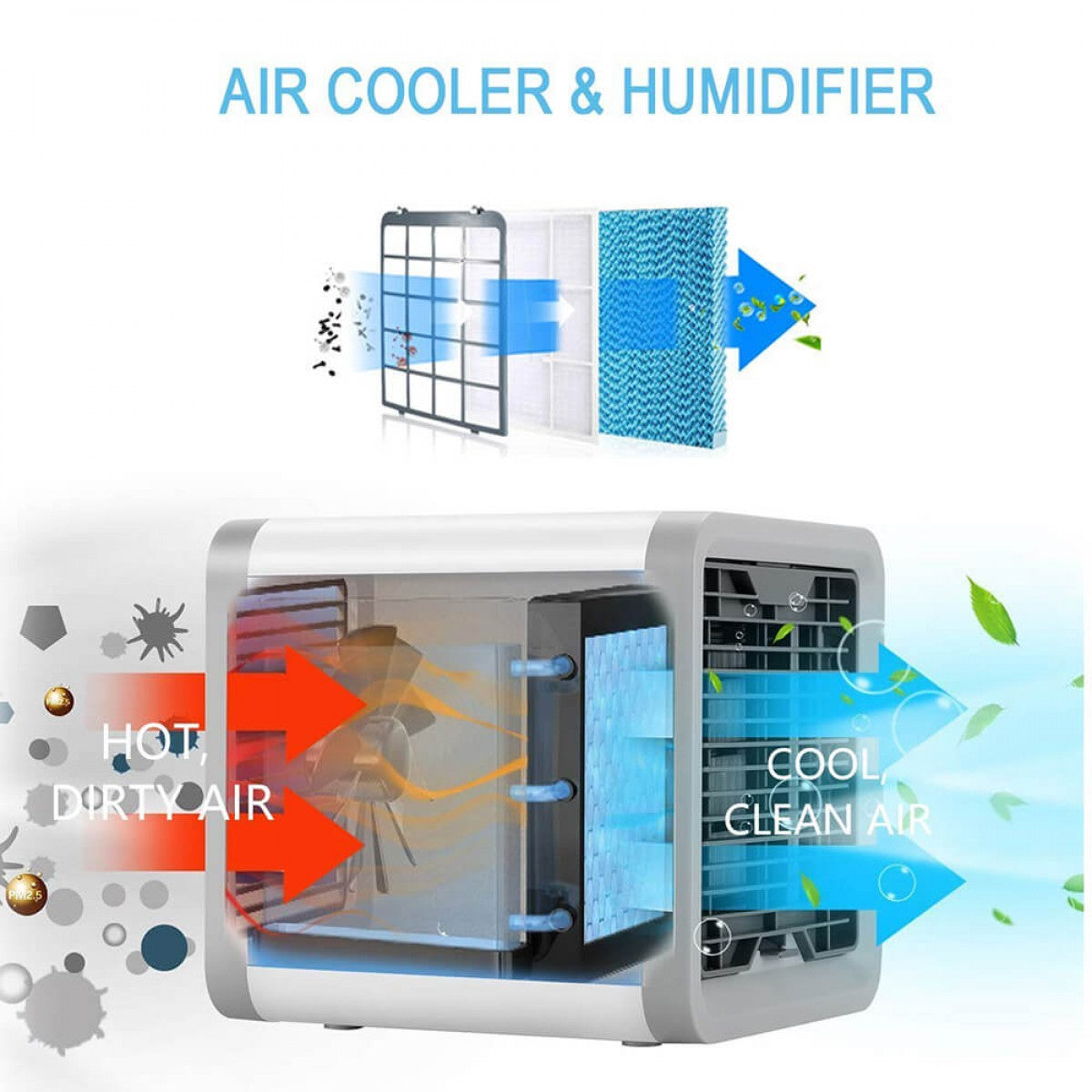 El principal secreto de este potente y pequeño climatizador está en su revolucionario filtro especial para transformar el aire caliente del exterior en aire frío de manera instantánea.
